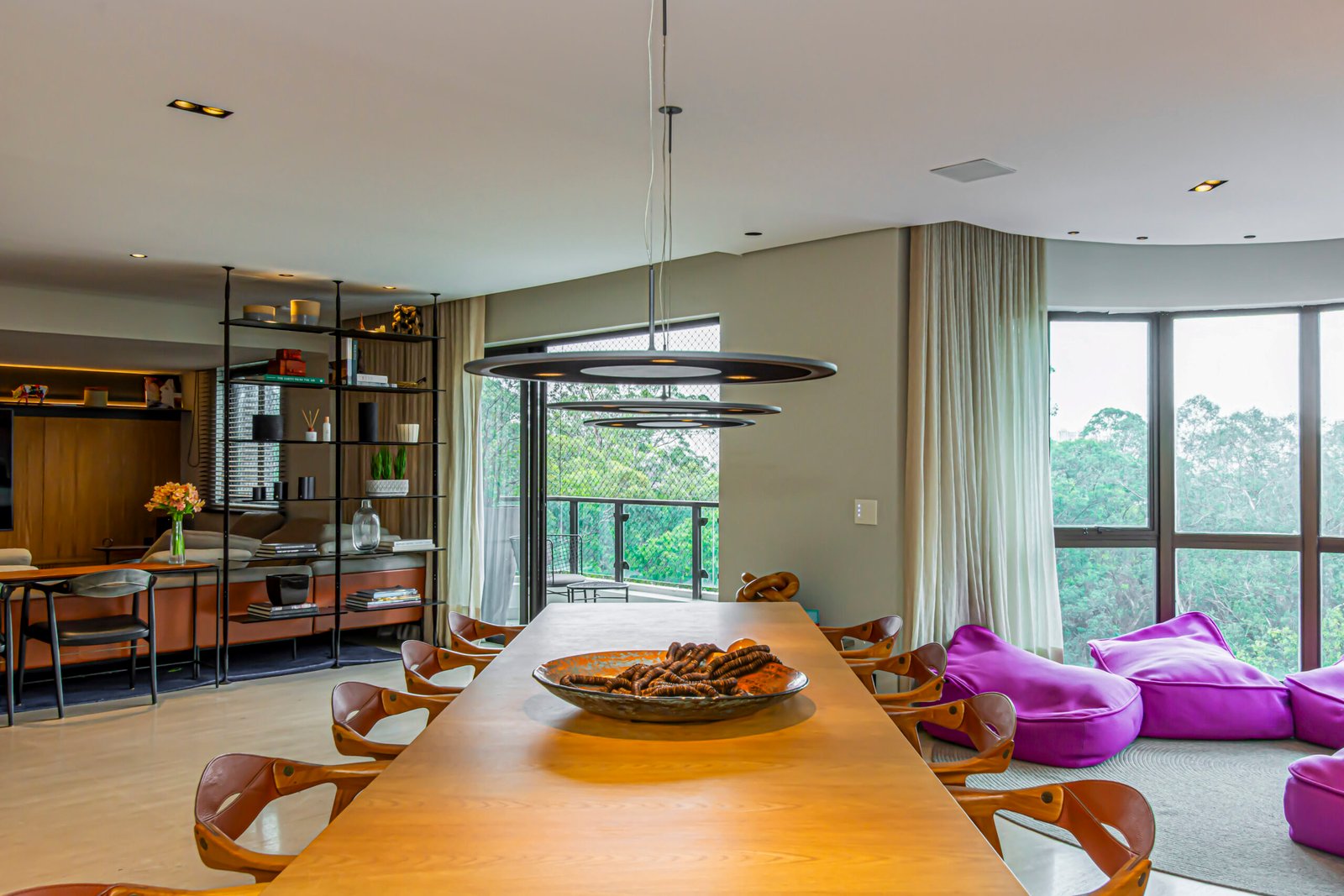 Na rotina, a diferença é ainda mais clara. Uma cozinha aberta para o living permite cozinhar sem se afastar da família ou dos amigos. Portas de correr conectando sala e varanda transformam a área social em um grande espaço para socializar. Já a integração entre estar e jantar facilita o dia a dia, tornando a casa mais funcional e convidativa.