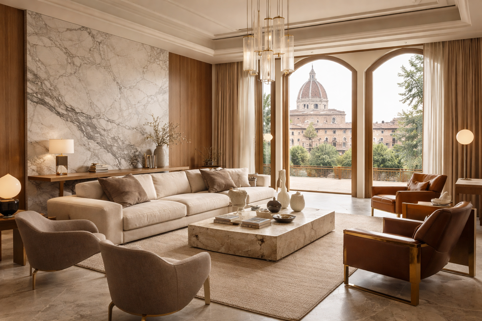 Referências italianas seguem como base para muitos projetos no Brasil. Cidades como Milão e Florença inspiram o uso de materiais nobres, como mármore e madeira natural, além de uma paleta neutra e atemporal. Além disso, o design italiano valoriza proporção e permanência, o que se reflete em interiores elegantes, com peças de assinatura e marcenaria precisa.