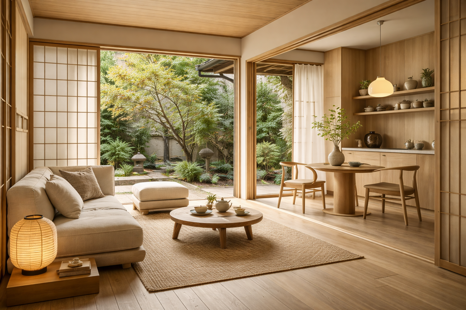 Por outro lado, o Japão influencia uma abordagem mais silenciosa e contemplativa. Elementos como luz natural, integração com o exterior e uso consciente dos espaços ganham protagonismo. Em São Paulo, essa estética aparece em apartamentos com plantas mais fluidas, poucos elementos e materiais orgânicos, criando ambientes que priorizam bem-estar e funcionalidade.