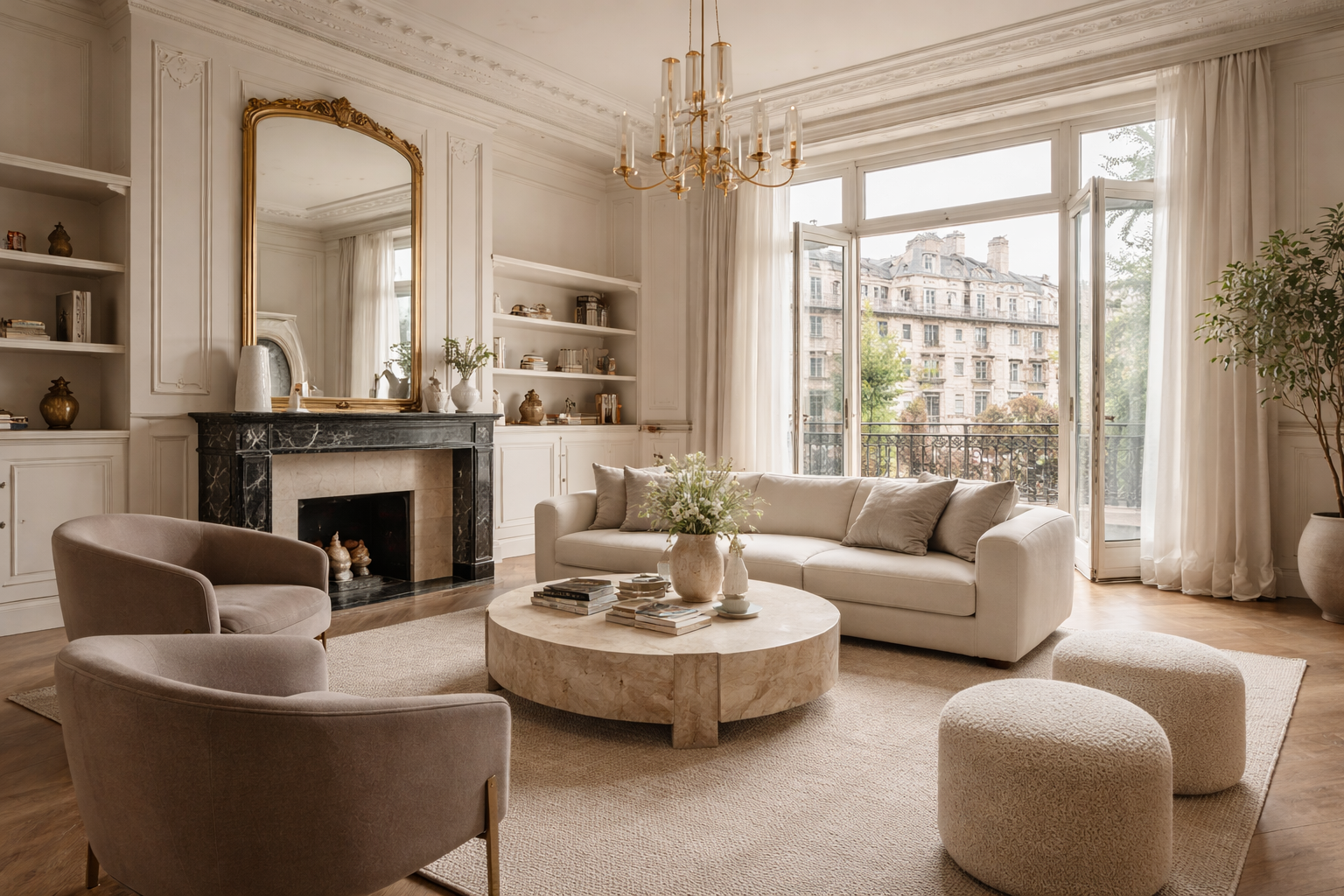 A estética parisiense traz uma sofisticação sutil, marcada por molduras, boiseries e uma mistura equilibrada entre o clássico e o contemporâneo. Esse contraste, aliás, tem sido amplamente explorado em imóveis reformados nos bairros mais tradicionais da cidade, onde o charme arquitetônico original é preservado e atualizado com intervenções pontuais.