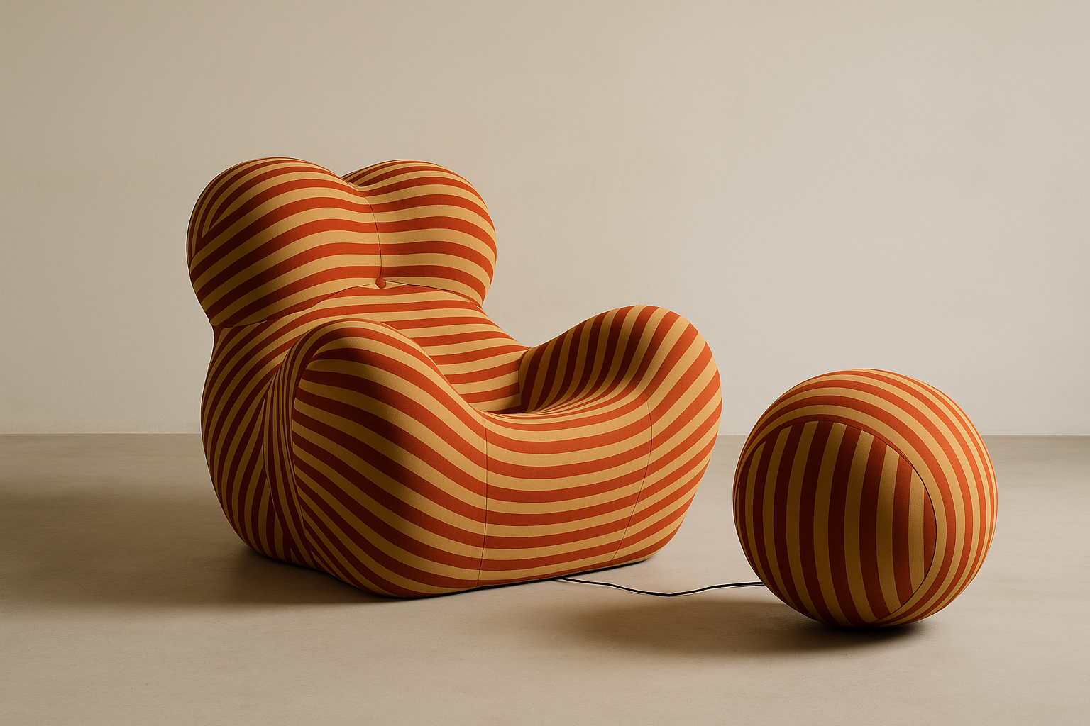 Criada em 1969, a Poltrona Up5, acompanhada do pufe Up6, é uma das peças mais provocantes e emblemáticas do design italiano. Suas formas orgânicas e proporções generosas evocam o corpo feminino, e o cordão que liga a poltrona ao pufe simboliza, segundo o autor, uma reflexão sobre liberdade e identidade. Além do discurso poético, o conforto é absoluto: feita de espuma moldada, a peça parece abraçar quem se senta.