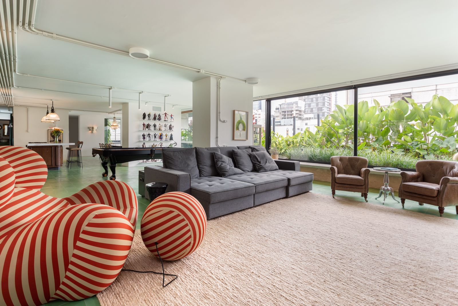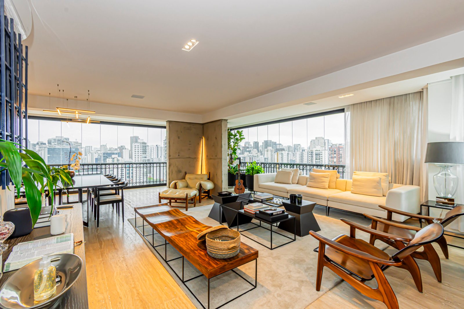Em alguns apartamentos dos Jardins e Itaim Bibi, ela aparece em livings amplos, emoldurada por janelas de vidro e piso de madeira, reforçando a atmosfera acolhedora e autoral desses projetos.